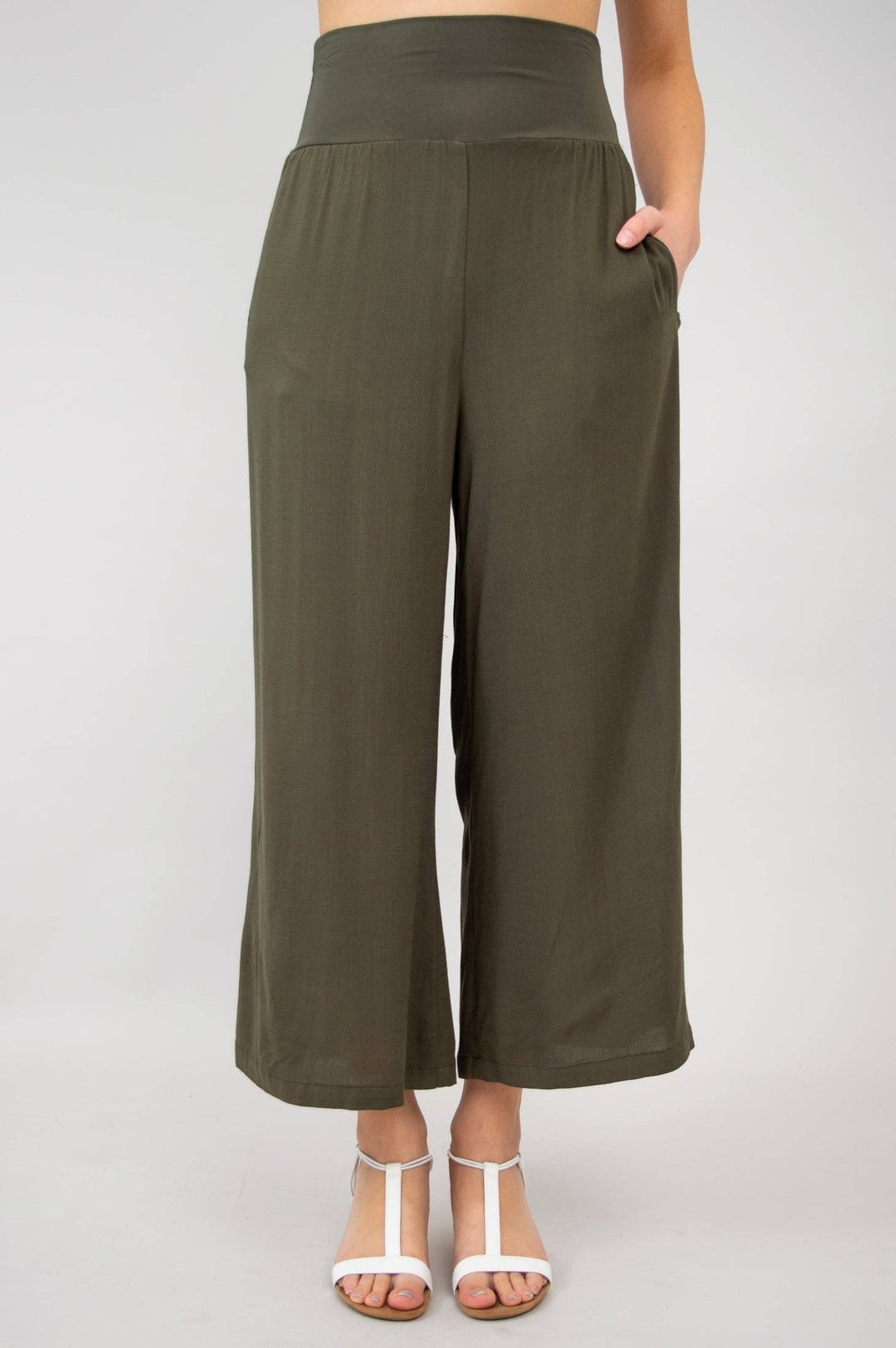 Textured Palazzo Pants - Moss