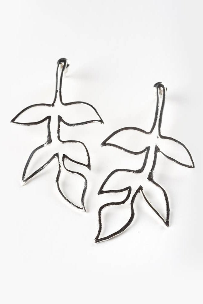 Leaf outline earrings on posts. Available in silver and gold finish. Fair trade, artisan made